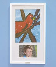 Distinctive My Little Artist Frame is a wonderful way to show off your child's masterpiece. The collage features a space for an 8-1/2" x 11" work of art and a 4" x 6" photo of the artist. Or, use the smaller space for a second drawing or painting. The removable engraved silver tag reads "My Little Artist." White mat will complement any artwork. Comes ready to hang horizontally or vertically. Wooden frame with glass panel. 11-1/4" x 18".Holds an 8-1/2" x 11" drawing and a 4" x 6" photo.Engraved nameplate included!Display it vertically or horizontally.Details:White wooden frame with glass panel.11-1/4" x 18".Every day special offer prices of Children's Art Picture Frame Display White with the product and testimonials on Children's Art Picture Frame Display White internet store.