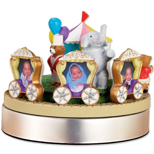 Lawrence Frames Wind Up Musical Circus Train Frame, Holds 3 2 by 3-Inch Photos OverviewAdorable Circus Carousel Picture Frame. Wind-up circus train holds three 2 by 3 wallet photos while circling the tent and playing the classic circus tune "Entrance of the Gladiators." A teddy bear ring master waits by the entrance with a very cute sitting elephant. Comes with a timeless nursery book "We're going to the Circus" starring the same characters featured on the carousel.Lawrence Frames Wind Up Musical Circus Train Frame, Holds 3 2 by 3-Inch Photos Features- Classic circus frame comes with nursery book